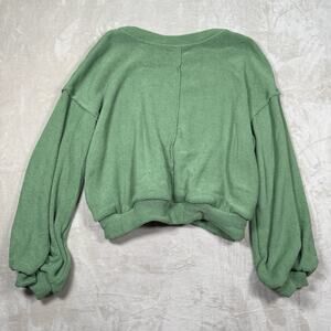 Free People Beach Happy Pullover Sweatshirt Women's Size XL Green Balloon Sleeve