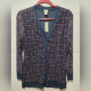 NWT, CHICO'S Women's Navy Blue Tweed Cardigan Sweater.Size 1 (M)