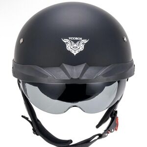 VCOROS P118-2A Half Face Motorcycle Helmet Medium DOT Black Sun Visor Adjustable