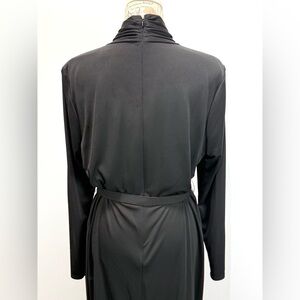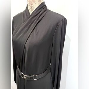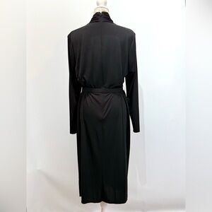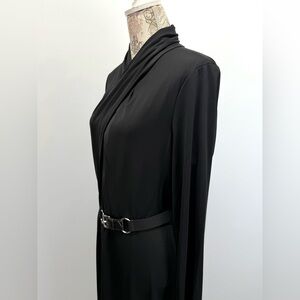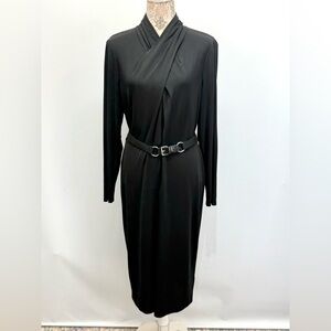 LAUREN RL Black Label Black long sleeve twist neck belted sheath dress size 16