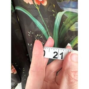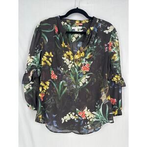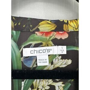 Chicos Top Womens Medium 1 Black Floral Sheer Ruffle Colorful Boho Bohemian