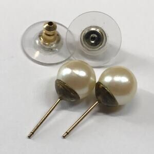 Vintage Deadstock New Richelieu White Cream Faux Pearl 7.7mm Stud Earrings