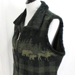 Woolrich Vest Womens Size L Green Black Check Moose Full Zip Front Pockets