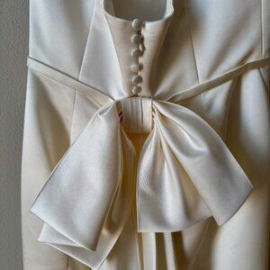 This duchesse satin strapless dress features a bow detail at the back. Perfect for bridal events!