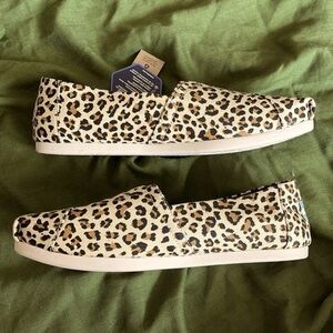 Brand New Toms Alpargata Birch Leopard Print Canvas Slip On Shoes Animal Jungle. Women’s size 9.5. No box. Pretty & fun print!