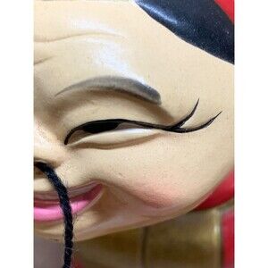 Vintage Bobble Head Nodder Bank Asia Japanese Wooden Ceramic Shelf Sitter