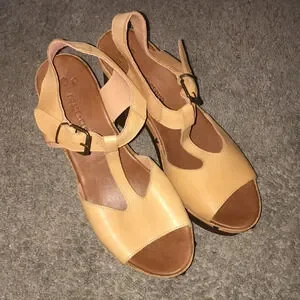 Anthropologie Musse & Cloud Tan Leather Wooden Heel Platforms Size 40/10 Made in Spain Beautiful soft leather. Heel 4” Platform 1.5”