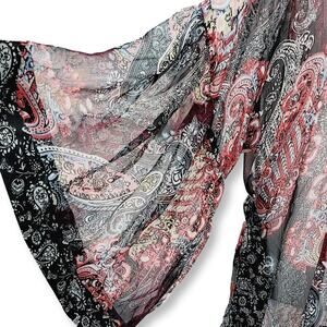 New Steve Madden Women's Boho Semi-sheer Paisley Print Belted Kimono Top