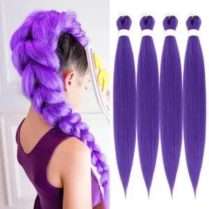 braiding hair, purple extensions, synthetic hair, pre-stretched braids, lightweight hair, no tangle extensions, long braids, smooth texture hair, bold styles, soft hair, kid-friendly braids, vibrant hair, durable braiding pack
