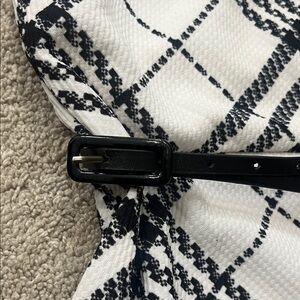 Motherhood Maternity Black and White Dress with thin belt over baby bump