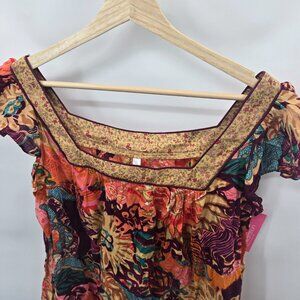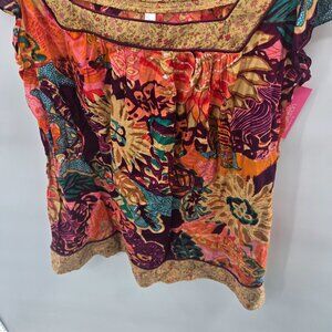 Xhilaration 2007 Y2K Boho Flutter Sleeve 100% Cotton Blouse Size Large