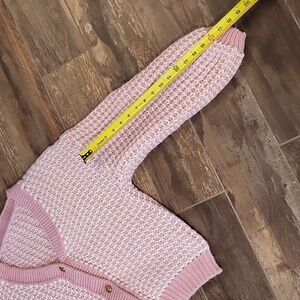 Super Duper Cute & Good Pre-Loved Condition Shein Pink & White Oversized Button Front Knit Cardigan w/ Gold Buttons, XS