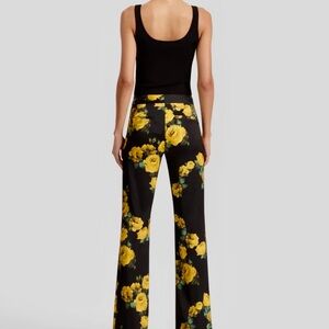 Chic black pants with bold yellow floral design. Ideal for versatile styling.
