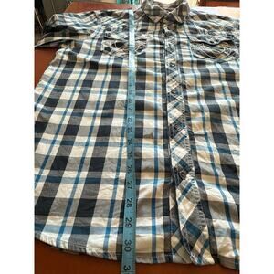 True Religion Men’s Plaid Western Shirt Blue Check Long Sleeve Cotton L