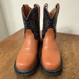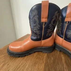 The product is a pair of Ariat women's boots in size 8B. These brown leather boots feature a Western style and are designed for comfort and durability. Known for their quality and performance, Ariat boots are a popular option for those looking for durable and stylish footwear for everyday wear.