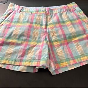 Style Profile: Crown & Ivy Shorts "Caroline" Plaid Blue Pink Yellow Green Size 8