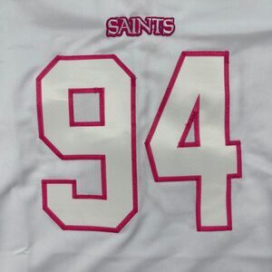 (Nike On Field New Orleans Saints Jersey Womens Medium Breast Cancer Awareness White Pink V-Neck #94)
