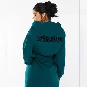 Our best-selling Forever Savage Short Robe with a Fashion Show Xclusive update. Our newest robe features the same soft feel as our original with an updated graphic Savage X Fenty showgirl logo at back.