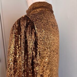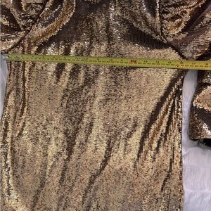 Dazzle in this A.L.C. gold sequin dress. Features shimmering sequins and long sleeves with zipper cuffs. Lined. Never worn and in excellent like new condition. Perfect for evening events.