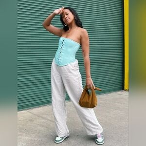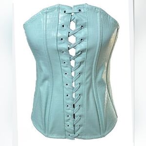 Savage x Fenty Size 2XL Queen of Galaxy Corset Aqua Blue Croc Embossed Bustier Top