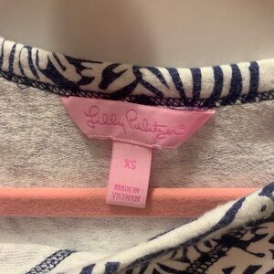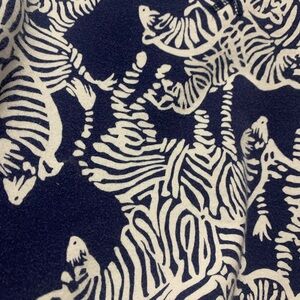 Lilly Pulitzer navy blue and white zebra print pullover. Unsure of the style name or print. Crew neck, terry fabric. Super soft and broken in. No flaws but is worn. Size small. I can add more pictures/ measurements if needed. Trying to unload some clothes I don’t wear often; check my other listings for name brand items! Thanks for looking!