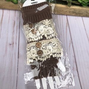 NWT boutique brown with cream lace open finger gloves. These are terrific! Great deal! Retails 25.00