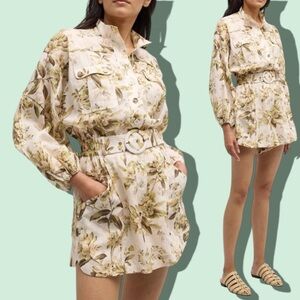 Zimmermann Cream and Green Floral Cottage-core Romper Size 2 Long Sleeve Outfit