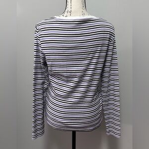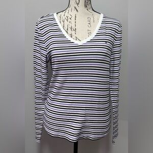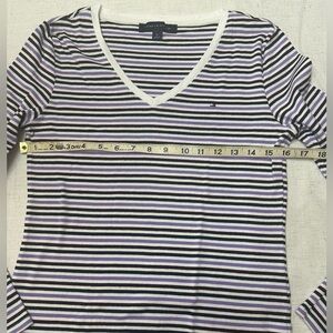 👚 TOMMY HILFIGER Women’s Purple & White Stripe Long Sleeve V-Neck T-Shirt - Size Medium 🌟