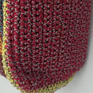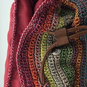 Vibrant and stylish, this multicolor crochet backpack is perfect for adding a pop of color to any outfit. Featuring a unique blend of colors, it's both functional and fashionable. Drawstring and magnet closure. Adjustable length straps. Zippered and open pockets inde. In great hardly used condition.