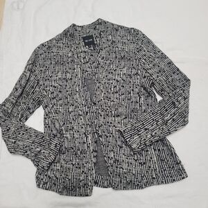 Nic & Zoe Stylish black and white open front cardigan blazer, jacket. Perfect for layering. size petite medium in nice used condition. see pics. cotton and viscose