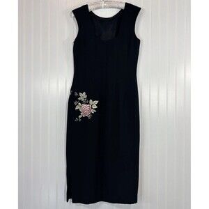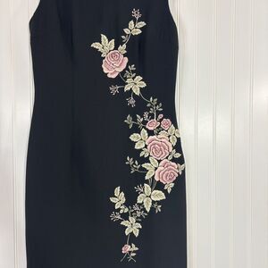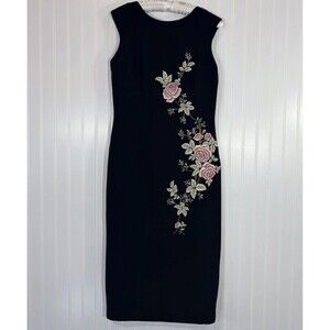 Maggy London Lined Sheath Dress Size 8 Black Elegant Floral Embroidered Wedding