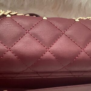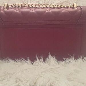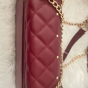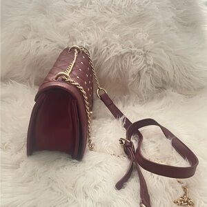 Badgley Mischka Quilted Shoulder Bag Burgundy with Gold Studs