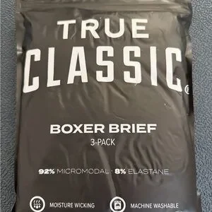 True Classic boxer briefs in a 3-pack. Moisture-wicking and machine washable.