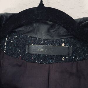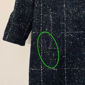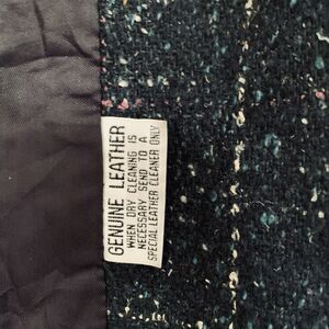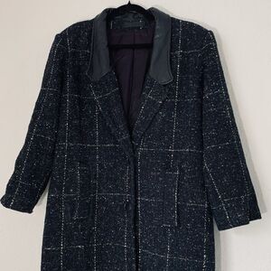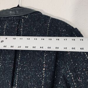 Vintage 80s Women L/XL* Coat Black Tweed Speckled Wool Leather Button Mod Gogo