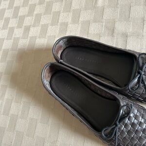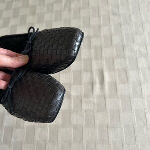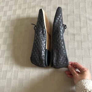 Handwoven calfskin leather upper, leather lining and sole, unlined and flexible as a perfect ballet flats should be, padded footbed, finished with a cute bow
