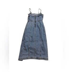 ✨👗 Steve Madden Giselle Denim Midi Dress Sz 2 Y2K Slit Spaghetti Strap 👗✨