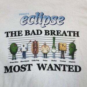 Vintage Wrigleys Eclipse Polar Ice Gum Bad Breath Most Wanted T-Shirt Large USA