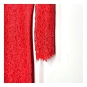♦️A classic DVF closet staple in a beautiful bright red color, the Zarita dress is cut from romantic floral lace and finished with scalloped edges.