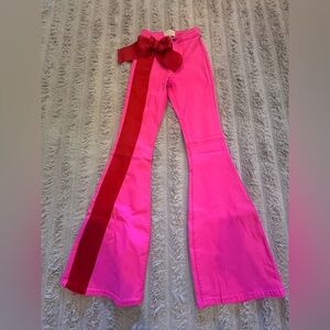 Judith March PINK BOW STRIPE FLARES with Red Bow
