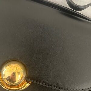 Furla Small Nero Sfera Crossbody / Shoulder Bag in Black. Gold Hardware.