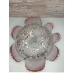 Vintage Mikasa Pink Glass Bowl Set. Rosella ruffle edge, flower shape.
