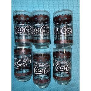 Vintage Coca Cola Tiffany style stained glass 6 cup set