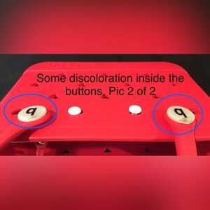 Bitty-sized BOGG tote bag in excellent condition! The holes are actually hearts on this limited edition Valentine’s Day bag! Please see pictures for a few small flaws- one is that the handles do not stand perfectly straight up (I think this could be fixed if molded back into shape) The other flaw to note is some discoloration inside 2 of the white “b” buttons, although not very noticeable.