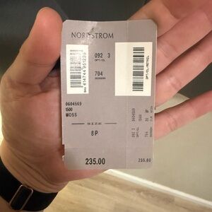 • Pants: pleated front, cuffed hem, side and back pockets, belt loops