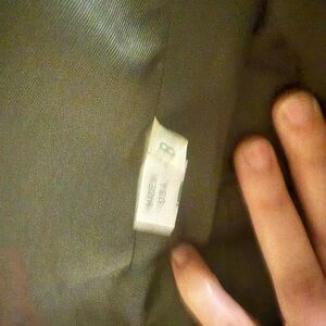 • Blazer: single gold button, front pockets, structured shoulders, lined