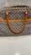 Stylish Louis Vuitton travel bag. Features iconic gray pattern with tan leather accents. Perfect for travel and everyday use.