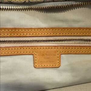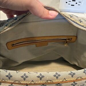 Inside does need to be cleaned and lining does make what sounds like a crunching sound? Not sure if that’s because the lining is vintage. Zippers work fine. Just want to really stress the shape of the handles.