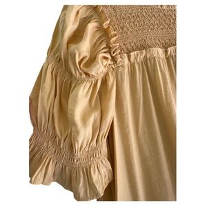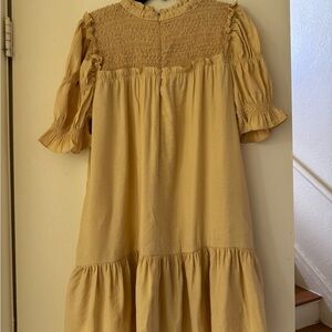 This gently used Moon River dress in a gorgeous shade of yellow is perfect for brunch dates, girls’ day out, baby shower or sipping wine! Featuring a flattering tiered design, with ruching on the sleeves and a beautifully designed neckline, it’s both stylish and comfortable. In great condition, this dress is the ideal addition to your wardrobe for any casual yet chic occasion. Don't miss out on this versatile piece!
