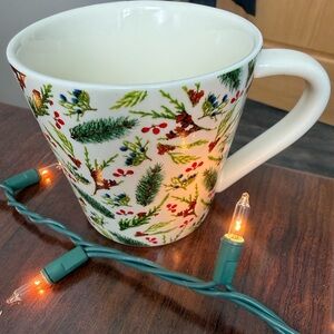 🌲Pine Cone, Berries, Holiday Pattern Latte Mug🌲The mug features a festive pattern of pine cones, red berries, and green foliage. Designed for hot beverages.