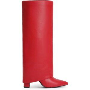 Women's Red Modatope Knee High Fold Over Chunky Heels Zipper Tall Boots